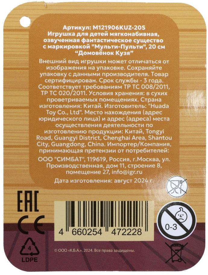 Мульти-Пульти Игрушка мягкая «Домовёнок Кузя»-35% +100