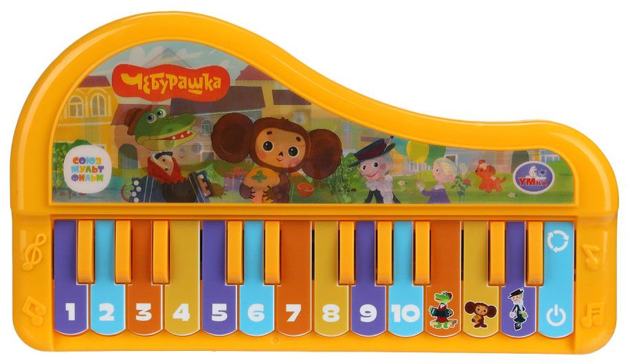 💳 Оплатить за товар можно при получении 🇰🇿 Есть бесплатная доставка по Казахстану от 1 дня 🎁 Копите бонусы с каждой покупки Серия: Чебурашка Музыкальное пианино «Чебурашка» ТМ «УМка» непременно понравится малышу и будет способствовать развитию его творческих способностей. Ребёнок с удовольствием будет нажимать на клавиши пианино и слушать песенки из любимого мультфильма и весёлые звуки. Кроме того, малыш сможет придумать и наиграть по клавишам собственную мелодию — для этого нужно переключить инструмент в режим пианино (последняя клавиша). Игра с пианино ТМ «УМка» развивает: слуховые навыки и музыкальный слух, координацию движений, визуальное восприятие и мелкую моторику. |