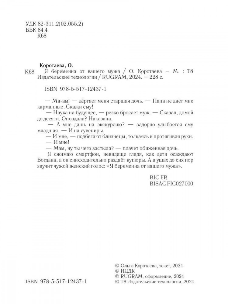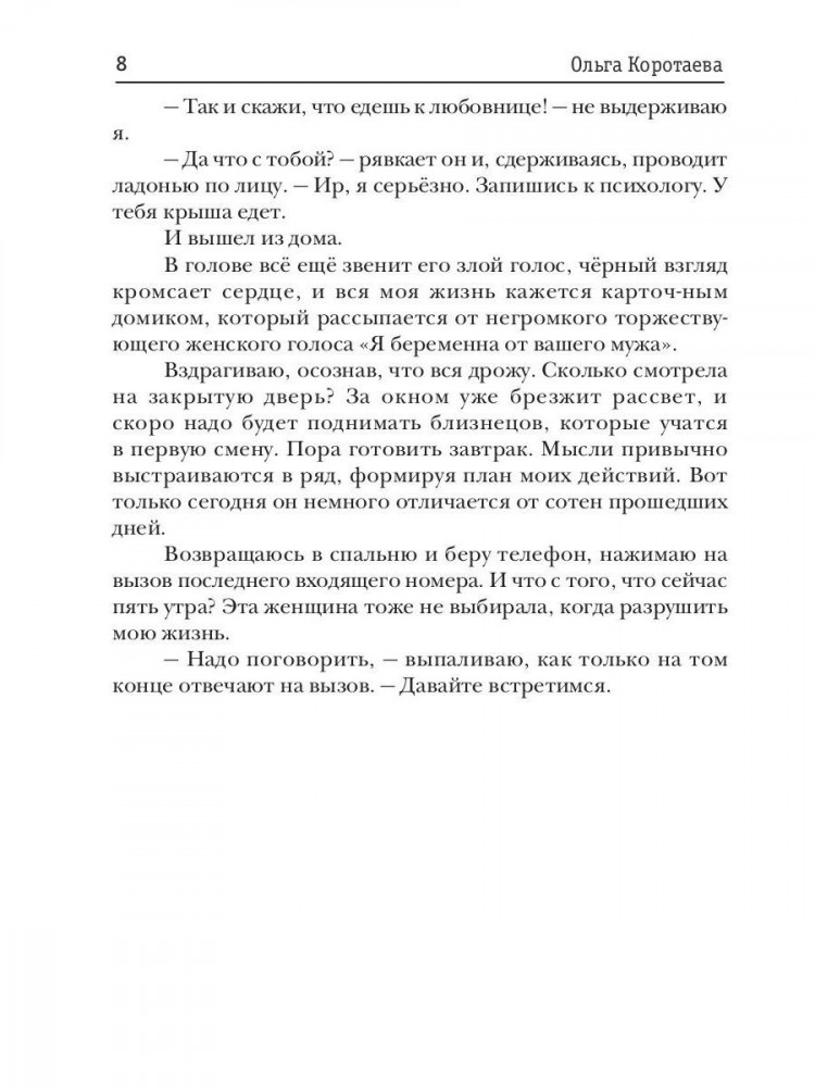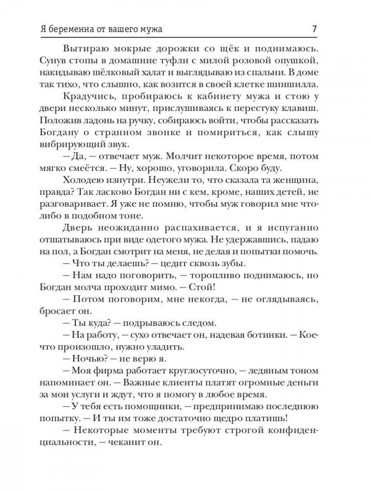 💳 Оплатить за товар можно при получении 🇰🇿 Есть бесплатная доставка по Казахстану от 1 дня 🎁 Копите бонусы с каждой покупки — Ма-ам! — дёргает меня старшая дочь. — Папа не даёт мне карманные. Скажи ему! — Наука на будущее, — резко бросает муж. — Сказал, домой до десяти. Опоздала? Наказана. — А мне дашь на экскурсию? — задорно улыбается ему младшая. — И на сувениры. — И мне, — подбегают близнецы, толкаясь и протягивая руки. — И мне! — Мам, ну ты чего застыла? — плачет обиженная дочь. Я сжимаю смартфон, невидяще глядя, как дети осаждают Богдана, а он снисходительно раздаёт купюры. А в ушах до сих пор звучит чужой женский голос: «Я беременна от вашего мужа». |
