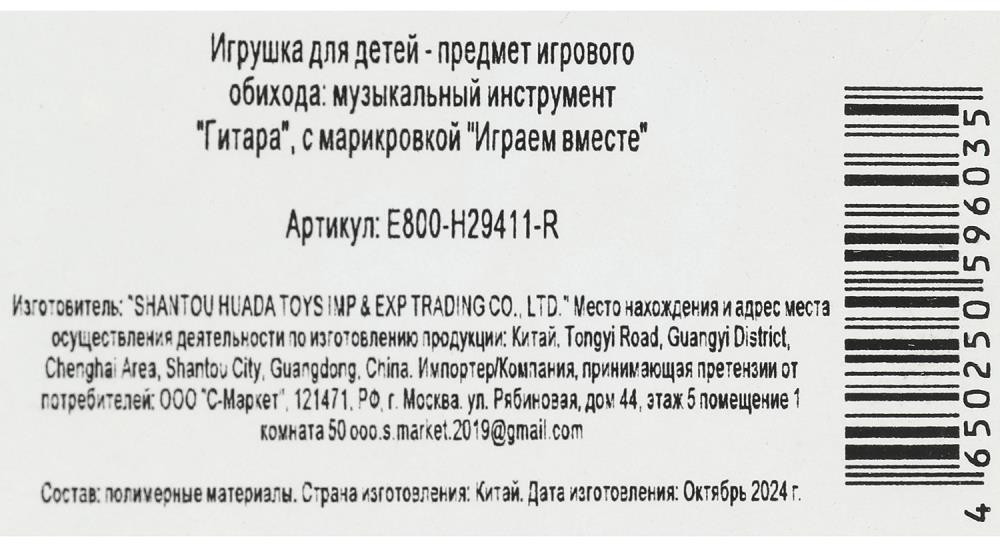 💳 Оплатить за товар можно при получении 🇰🇿 Есть бесплатная доставка по Казахстану от 1 дня 🎁 Копите бонусы с каждой покупки Серия: Ми-ми-мишки Гитара «Ми-ми-мишки» ТМ «Играем вместе» станет отличным подарком для маленьких поклонников мультсериала про весёлых и дружелюбных медвежат. Данная гитара — это уменьшенная версия классической гитары, разработанная специально для детей. Она имеет компактный размер, легкий вес и мягкие струны, что делает её удобной и безопасной для обучения маленьких музыкантов. Идеально подходит для первых шагов в освоении инструмента и развития музыкальных навыков. Игры на музыкальном инструменте ТМ «Играем вместе» способствуют развитию: артистизма, музыкального слуха, чувства такта и ритма и координации движений. |