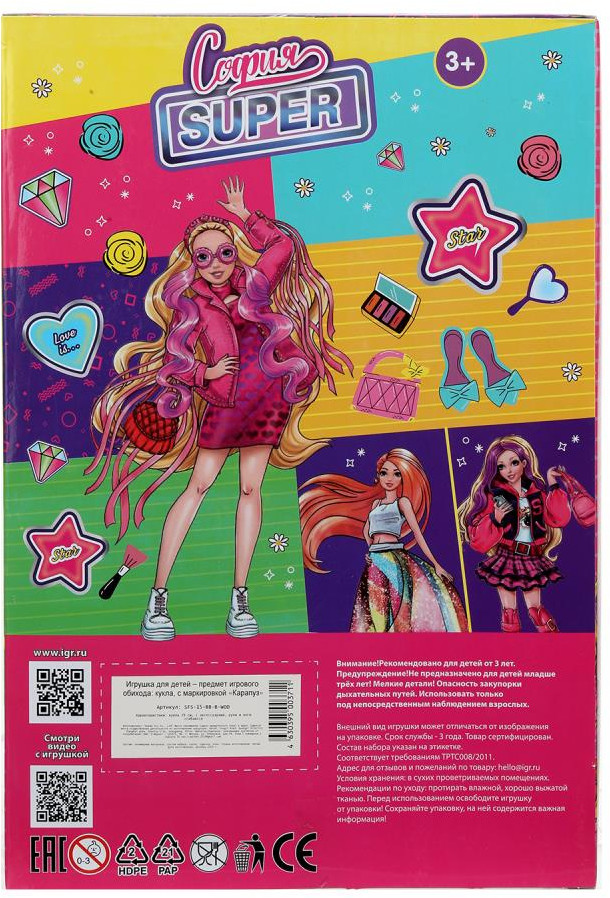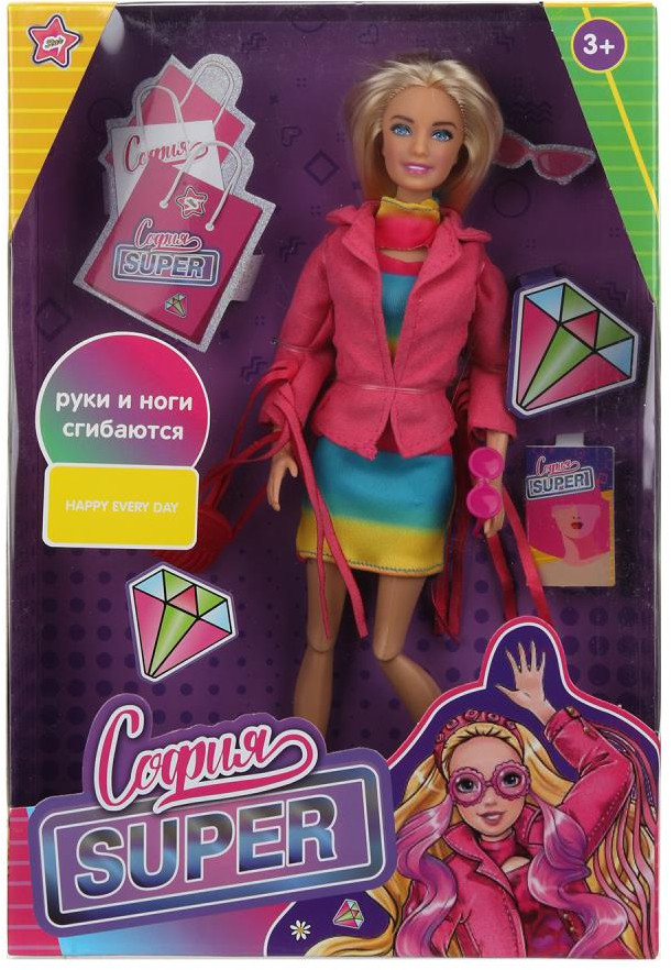 💳 Оплатить за товар можно при получении 🇰🇿 Есть бесплатная доставка по Казахстану от 1 дня 🎁 Копите бонусы с каждой покупки Серия: София и Алекс Суперстильная София одета в яркое полосатое платье и розовый жакет с бахромой на рукавах, образ дополняют модные очки. Одежду и аксессуары легко снять и надеть. С такой модной куклой девочке будет интересно и весело играть: благодаря тому, что руки и ноги куклы подвижны, им можно придать любое положение. У Софии очень длинные красивые волосы с цветными прядями, которые хозяйка куклы сможет заплетать в разные причёски. Наличие дополнительных аксессуаров в наборе сделает игры с куклой более разнообразными и интересными. |