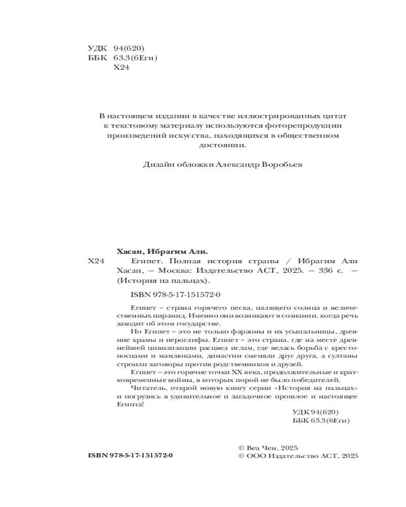 💳 Оплатить за товар можно при получении 🇰🇿 Есть бесплатная доставка по Казахстану от 1 дня 🎁 Копите бонусы с каждой покупки Серия: История на пальцах Египет — страна горячего песка, палящего солнца и величественных пирамид. Именно они возникают в сознании, когда речь заходит об этом государстве. Но Египет — это не только фараоны и их усыпальницы, древние храмы и иероглифы. Египет — это страна, где на месте древнейшей цивилизации расцвел ислам, где велась борьба с крестоносцами и мамлюками, династии сменяли друг друга, а султаны строили заговоры против родственников и друзей. Египет — это горячие точки XX века, продолжительные и кратковременные войны, в которых порой не было победителей. Читатель, открой новую книгу серии «История на пальцах» и погрузись в удивительное и загадочное прошлое и настоящее Египта! |