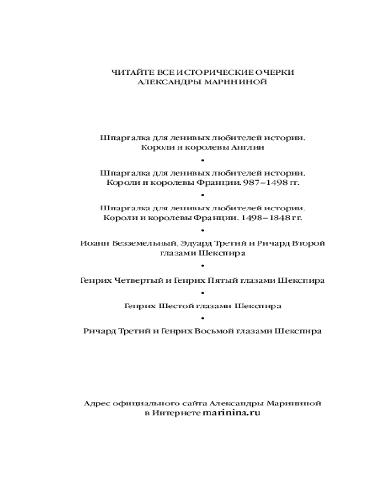 💳 Оплатить за товар можно при получении 🇰🇿 Есть бесплатная доставка по Казахстану 🎁 Копите бонусы с каждой покупки Серия: А.Маринина. Больше чем История (обложка) Генрих Шестой — самая трагическая фигура на английском престоле — в новой исторической книге Александры Марининой. Восьми месяцев от роду занял отцовский трон. В девять лет был увенчан французской короной. Казалось, сбылась золотая мечта Вильгельма Завоевателя о «единой и неделимой» Англо-Французской монархии. Но не срослось... Потерял Генрих Шестой, все потерял! Столетнюю войну проиграл Жанне д’Арк с ее орлеанцами. Братоубийственную бойню Алой и Белой роз не предотвратил. Месяцами находился в шизофреническом ступоре. Злые языки шептались, что жена, прекрасная Маргарита Анжуйская, неверна. Власть уплывала из рук, а он грезил об идиллической жизни пастуха и поэта. В 49 лет последний из династии Ланкастеров оказался очевидцем убийства своего единственного сына Эдуарда и сам погиб в плену. Стоит ли удивляться, что творец принца Гамлета посвятил Генриху Шестому наиболее объемную свою пьесу! |