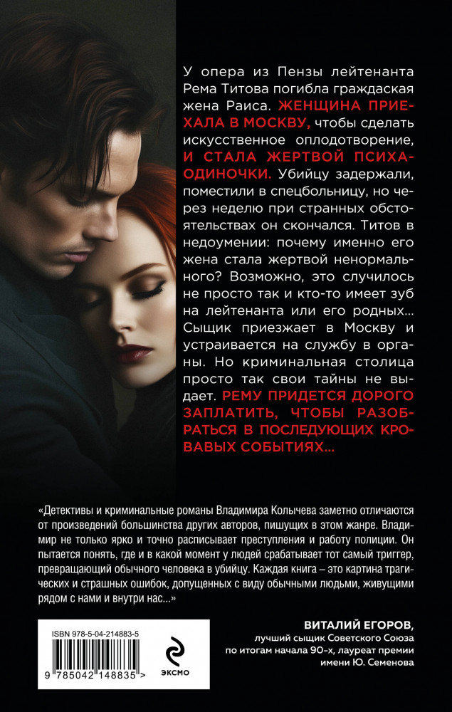 💳 Оплатить за товар можно при получении 🇰🇿 Есть бесплатная доставка по Казахстану от 1 дня 🎁 Копите бонусы с каждой покупки Серия: Колычев. Роковой соблазн У опера из Пензы лейтенанта Рема Титова погибла гражданская жена Раиса. Женщина приехала в Москву, чтобы сделать искусственное оплодотворение, и стала жертвой психа-одиночки. Убийцу задержали, поместили в спецбольницу, но через неделю при странных обстоятельствах он скончался. Титов в недоумении: почему именно его жена стала жертвой ненормального? Возможно, это случилось не просто так, и кто-то «имеет зуб» на лейтенанта или его родных... Сыщик приезжает в Москву и устраивается на службу в органы. Но криминальная столица просто так свои тайны не выдает. Рему придется дорого заплатить, чтобы разобраться в последующих кровавых событиях... |