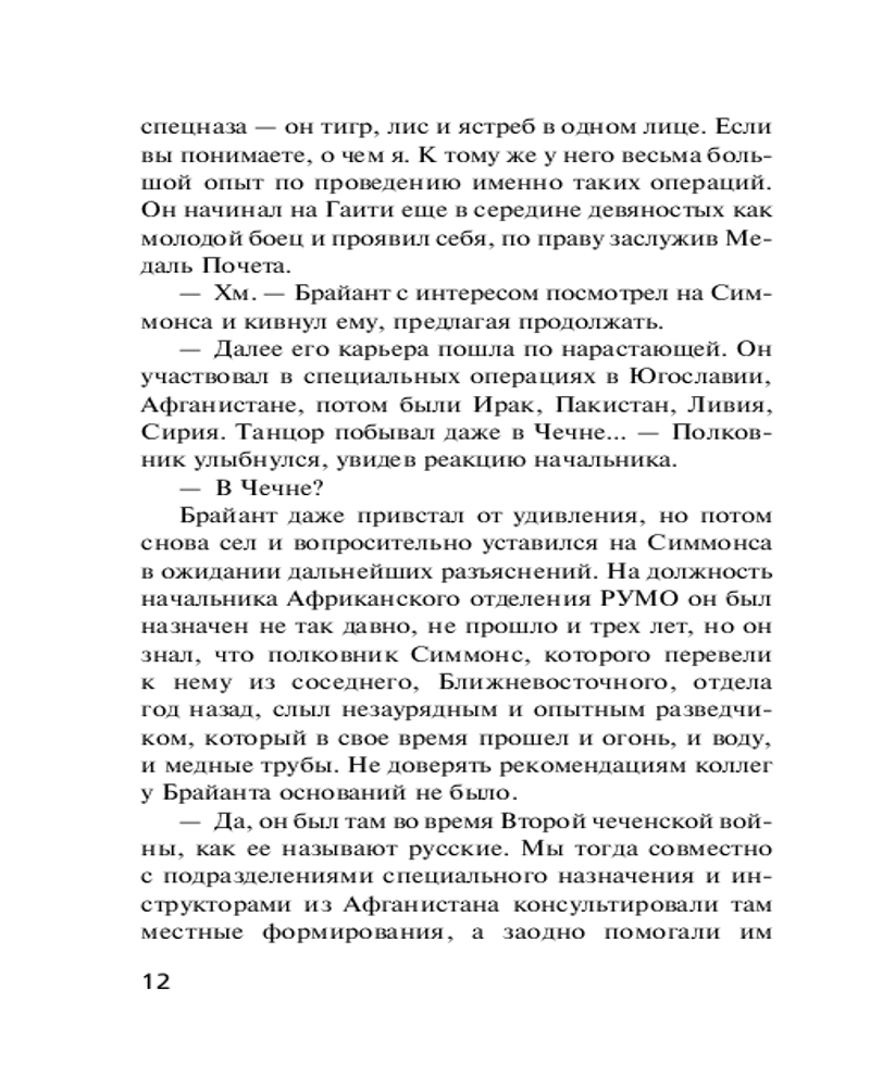 💳 Оплатить за товар можно при получении 🇰🇿 Есть бесплатная доставка по Казахстану от 1 дня 🎁 Копите бонусы с каждой покупки Серия: Спецназ ГРУ. Боевые романы Сергея Зверева (обложка) Западные спецслужбы пытаются ослабить российское влияние в африканском регионе. В ход идут самые грязные методы. ЦРУ забрасывает в Судан известного рейнджера с позывным Танцор, который вместе со своими подельниками похищает несколько высокопоставленных чиновников, а также прибывшего в страну для переговоров военного советника из Египта. Американцы надеются, что правительство Судана обратится к ним за помощью в розыске пропавших, после чего они смогут диктовать аборигенам свои условия. Но африканцы обратились к русским. На поиски заложников отправляется группа подполковника Александра Ковригина. Он догадывается, где может скрываться опасный головорез, тем более что у российского спецназовца с Танцором личные счеты... |