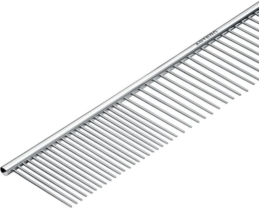 Расческа изготовлена из металла, прошедшего экологическую гальванизацию, что предотвращает появление ржавчины и способствует повышению функциональности инструмента — сглаживает структуру материала, благодаря чему он идеально гладко скользит по шерсти. В отличие от традиционного метода, экогальванизация производит значительно меньше отходов и не выбрасывает вредных веществ в окружающую среду, в которой мы живем вместе с нашими любимыми питомцами. Тонкая конструкция расчески делает ее чрезвычайно удобной в использовании и обеспечивает первоклассные результаты.