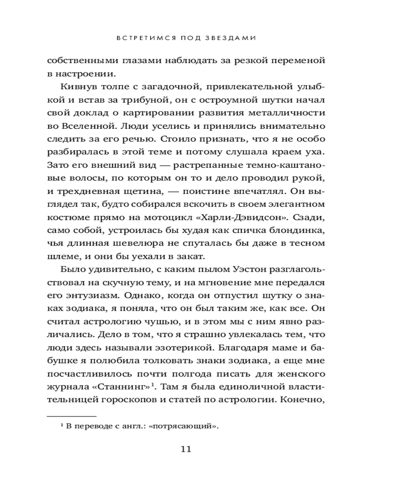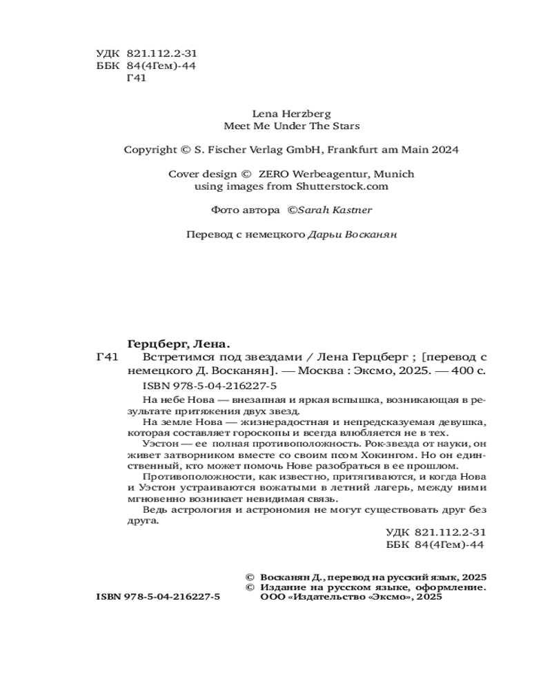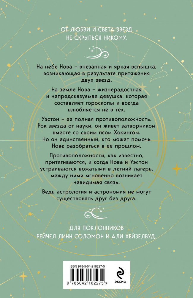 💳 Оплатить за товар можно при получении 🇰🇿 Есть бесплатная доставка по Казахстану от 1 дня 🎁 Копите бонусы с каждой покупки Серия: Стихии любви. Лена Герцберг На небе Нова — внезапная и яркая вспышка, возникающая в результате притяжения двух звезд. На земле Нова — жизнерадостная и непредсказуемая девушка, которая составляет гороскопы и всегда влюбляется не в тех. Уэстон — ее полная противоположность. Рок-звезда от науки, он живет затворником вместе с своим псом Хокингом. Но он единственный, кто может помочь Нове разобраться в ее прошлом. Противоположности, как известно, притягиваются, и когда Нова и Уэстон устраиваются вожатыми в летний лагерь, между ними мгновенно возникает невидимая связь. Ведь астрология и астрономия не могут существовать друг без друга. Идеальная история для поклонников романов Али Хейзелвуд и Сараи Уилсон. |