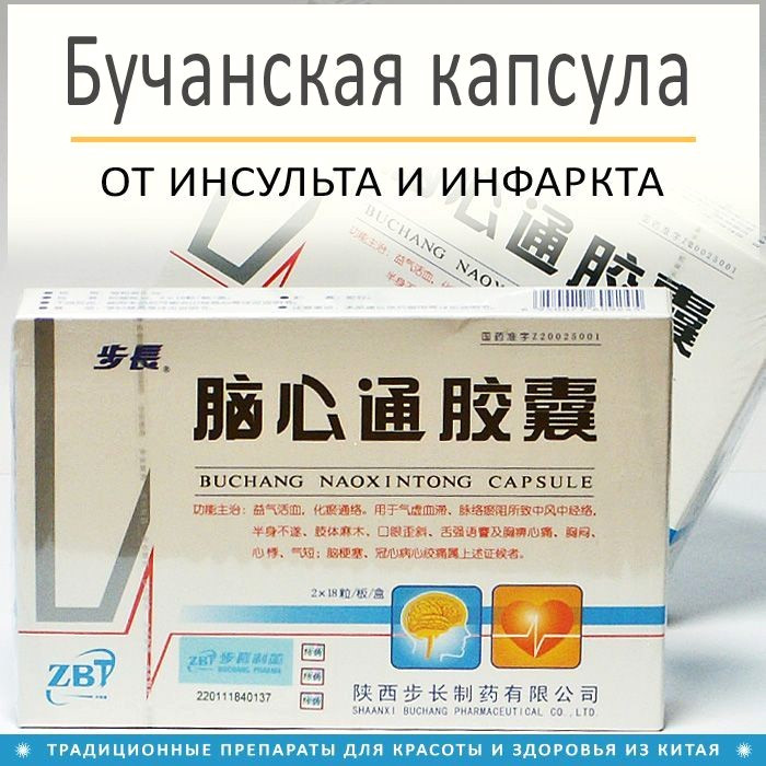 | Бучанская капсула при инсульте и ишемии «Buchang Naoxintong Capsule»+40 (бонусов)