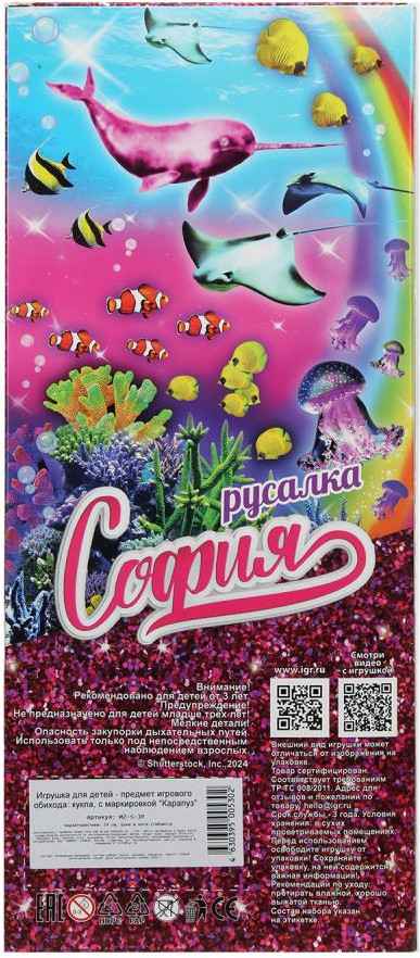 Карапуз Кукла «София-русалка»В данный момент этот товар отсутствует в продаже. Возможно, у нас найдется аналогичный или похожий товар здесь. Прекрасная русалка София одета в фиолетовый топ из блестящей ткани, а также серьги, колье и корону. Её зелёный хвост красиво блестит и переливается. Одежду легко снять и надеть. С такой модной куклой девочке будет интересно и весело играть: благодаря тому, что руки и ноги куклы подвижны, им можно придать любое положение. У Софии длинные красивые волосы, которые хозяйка куклы может заплетать в разные причёски. Детально проработанный дизайн игрушки вдохновит девочку на новые игровые сюжеты. |