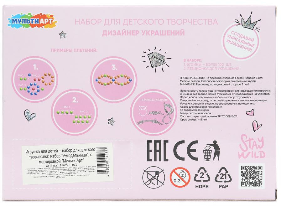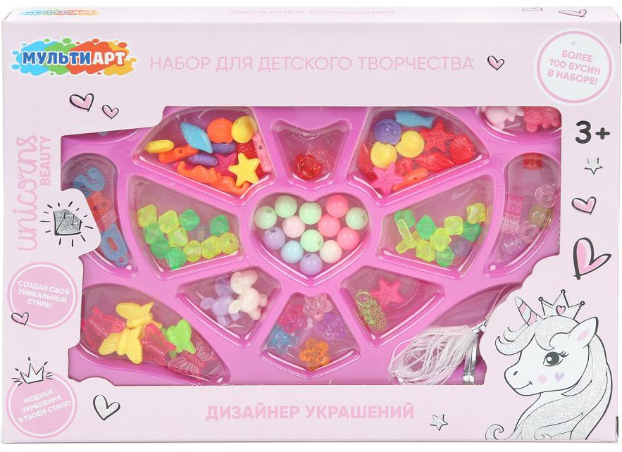 💳 Оплатить за товар можно при получении 🇰🇿 Есть бесплатная доставка по Казахстану от 1 дня 🎁 Копите бонусы с каждой покупки Набор для создания украшений из бусин ТМ «Мульти Арт» — отличный подарок для маленьких модниц: |