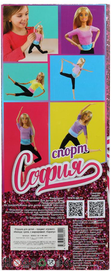 Карапуз Кукла «София. Спорт»В данный момент этот товар отсутствует в продаже. Возможно, у нас найдется аналогичный или похожий товар здесь. Серия: София и Алекс Очаровательная спортсменка София одета в стильный спортивный костюм, состоящий из топа и укороченных брючек из блестящей розовой ткани с чёрными вставками, на ногах — удобные белые кроссовки. Образ дополняют яркие фитнес-часы. Одежда и аксессуары легко снимаются и надеваются. Кроме того, у Софии модная причёска с выбритым виском. С такой модной куклой девочке будет интересно и весело играть: благодаря тому, что руки и ноги куклы подвижны, им можно придать любое положение. Детально проработанный дизайн игрушки вдохновит девочку на множество интересных игровых сюжетов. |
