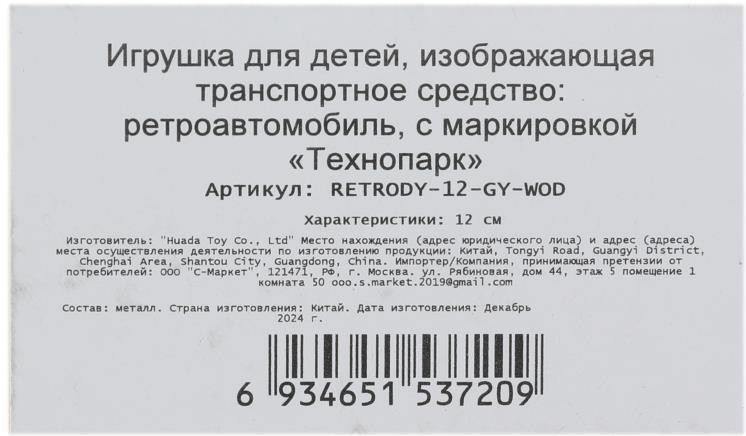 Технопарк Модель металлическая «Ретроавтомобиль»