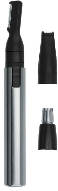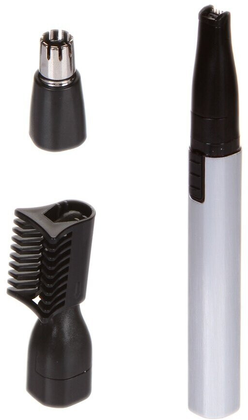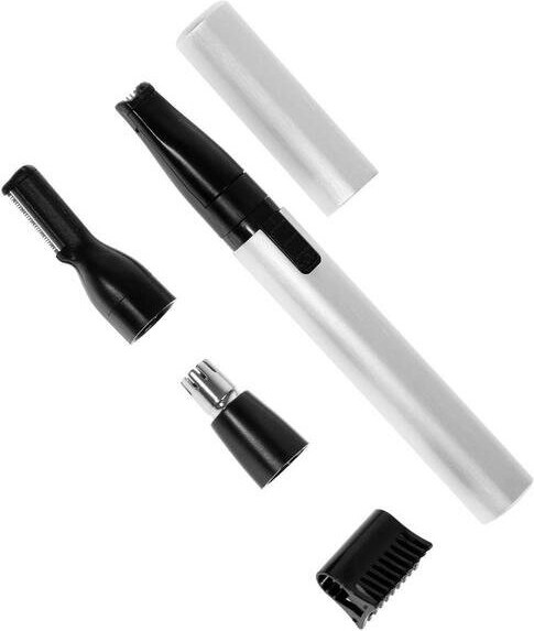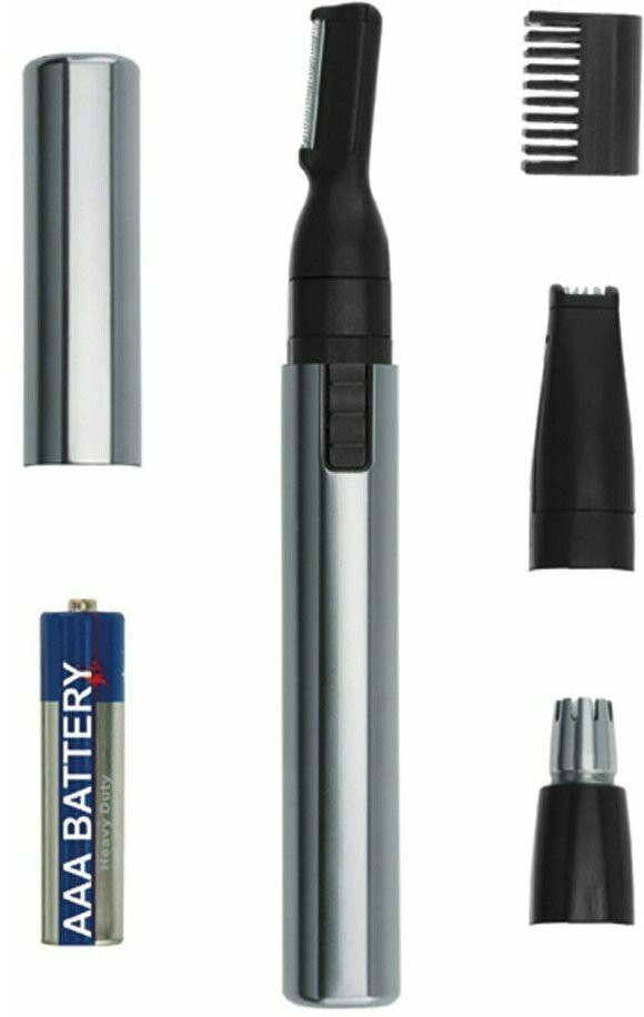 Комплектация: триммер — 1 шт, две сменные головки — 1 шт, пластиковая насадка, 2 и 4 мм — 1 шт, защитный колпачок — 1 шт, батарейка типа ААА — 1 шт.