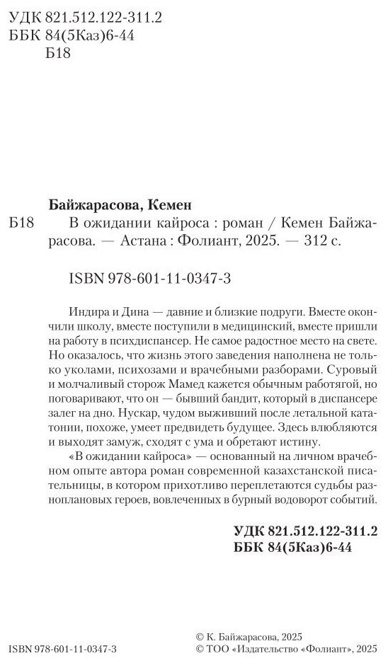 💳 Оплатить за товар можно при получении 🇰🇿 Есть бесплатная доставка по Казахстану 🎁 Копите бонусы с каждой покупки Индира и Дина — давние и близкие подруги. Вместе окончили школу, вместе поступили в медицинский, вместе пришли на работу в психдиспансер. Не самое радостное место на свете. Но оказалось, что жизнь этого заведения наполнена не только уколами, психозами и врачебными разборами. Суровый и молчаливый сторож Мамед кажется обычным работягой, но поговаривают, что он — бывший бандит, который в диспансере залег на дно. Нускар, чудом выживший после летальной кататонии, похоже, умеет предвидеть будущее. Здесь влюбляются и выходят замуж, сходят с ума и обретают истину. |