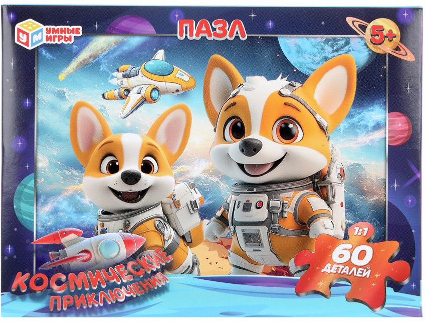 Умные игры Пазл «Космические приключения»В данный момент этот товар отсутствует в продаже. Возможно, у нас найдется аналогичный или похожий товар здесь. Классические пазлы в коробке «Космические приключения» ТМ «Умные игры» — отличный подарок для детей. Данный пазл представляет собой игру-головоломку, в которой необходимо в правильной последовательности соединить элементы друг с другом и получить в результате красочную картинку с изображением милых корги-космонавтов. Сборка пазлов — это очень увлекательное занятие, в процессе которого дети учатся искать и совмещать детали разной формы, с каждым разом делая это всё лучше и быстрее. |