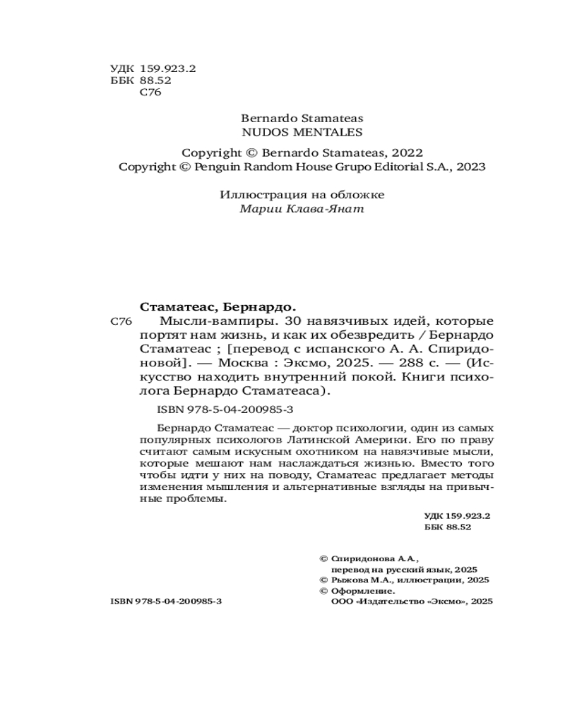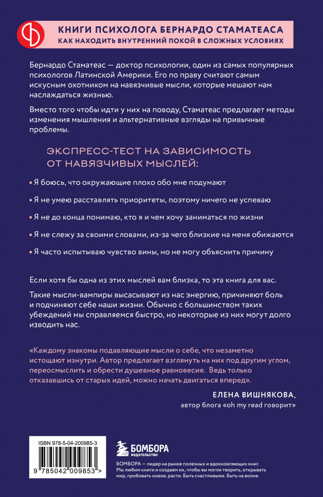 💳 Оплатить за товар можно при получении 🇰🇿 Есть бесплатная доставка по Казахстану от 1 дня 🎁 Копите бонусы с каждой покупки Серия: Искусство находить внутренний покой. Книги психолога Бернардо Стаматеаса Если хотя бы одна из этих навязчивых мыслей регулярно вас посещает, то эта книга для вас: |