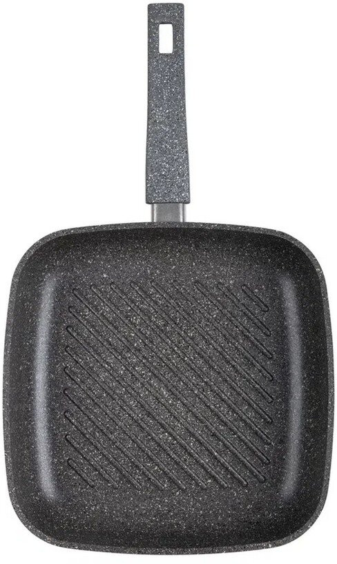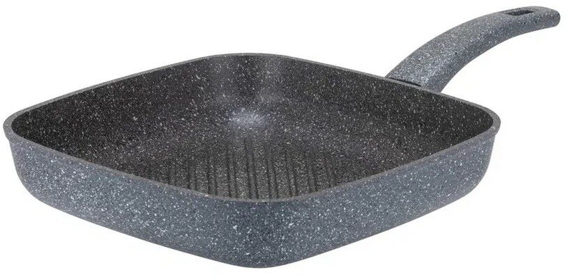 Сковорода-гриль — выбор тех, кто ценит здоровое питание, потому что ребристое дно позволяет лишнему жиру стекать в эти желобки. Что важно при жарки, например, жирной рыбы или стейка. Еще одна особенность нашей сковороды — толстые стенки и дно. Это важно для равномерного прогрева. Если вы думаете о шашлыке, но погода не позволяет его приготовить на природе, рекомендуем воспользоваться таким аналогом. Как ее использует наш повар Алексей Володин, вы можете посмотреть тут.