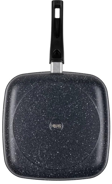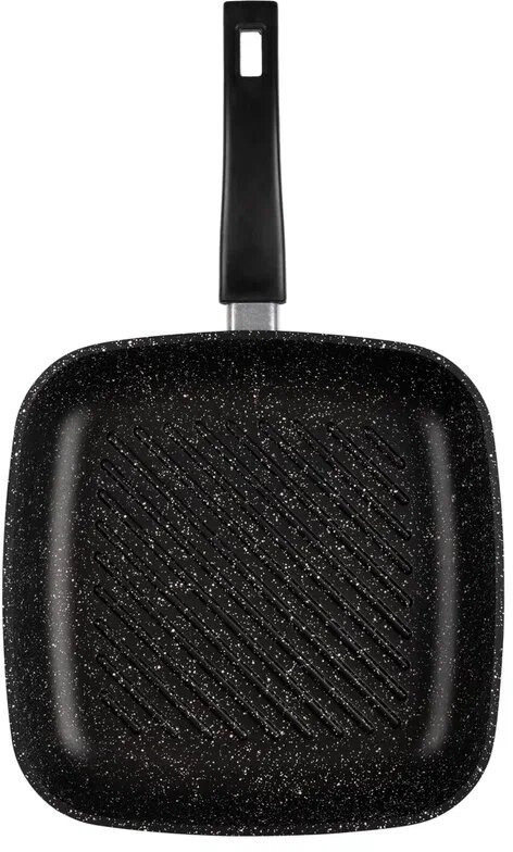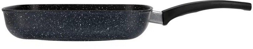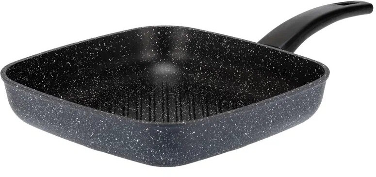 Сковорода-гриль — выбор тех, кто ценит здоровое питание, потому что ребристое дно позволяет лишнему жиру стекать в эти желобки. Что важно при жарки, например, жирной рыбы или стейка. Еще одна особенность нашей сковороды — толстые стенки и дно. Это важно для равномерного прогрева. Если вы думаете о шашлыке, но погода не позволяет его приготовить на природе, рекомендуем воспользоваться таким аналогом. Как ее использует наш повар Алексей Володин, вы можете посмотреть тут.