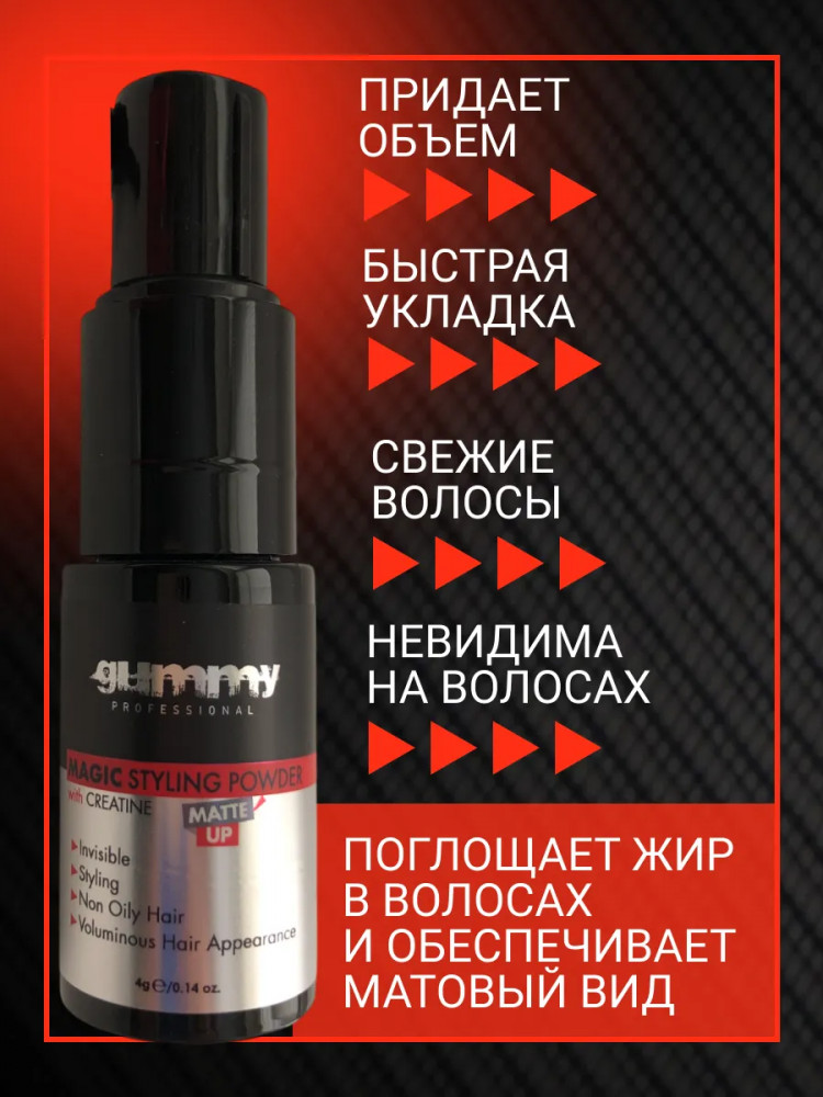 Gummy Professional Пудра для укладки волос «Magic Styling Powder»В данный момент этот товар отсутствует в продаже. Возможно, у нас найдется аналогичный или похожий товар здесь. 3 эффекта! Сушка, придание объема и стайлинг. Эффект пудры поглощает жир в волосах и обеспечивает сухой и матовый вид. Во время укладки волос он также придает им объем и свежий вид. Профессиональная пудра придает прикорневой стойкий объем и текстуру, делает волосы послушными и освежает в перерывах между мытьем. Лучшая альтернатива сухому шампуню. |