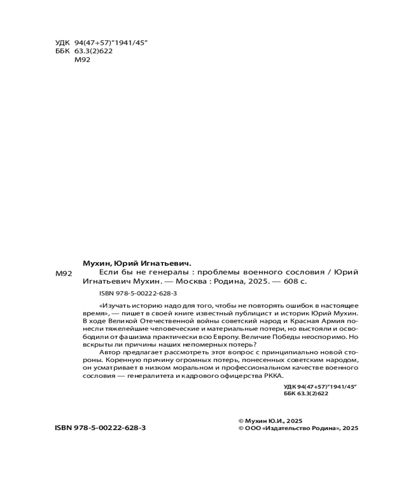 💳 Оплатить за товар можно при получении 🇰🇿 Есть бесплатная доставка по Казахстану 🎁 Копите бонусы с каждой покупки Серия: Книга эпоха «Изучать историю надо для того, чтобы не повторять ошибок в настоящее время», — пишет в своей книге известный публицист и историк Юрий Мухин. В ходе Великой Отечественной войны советский народ и Красная Армия понесли тяжелейшие человеческие и материальные потери, но выстояли и освободили от фашизма практически всю Европу. Величие Победы неоспоримо. Но вскрыты ли причины наших непомерных потерь? |
