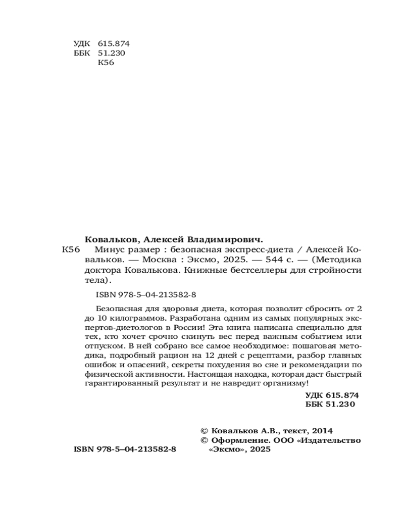 Минус размер. Безопасная экспресс-диетаАлексей Владимирович Ковальков +110