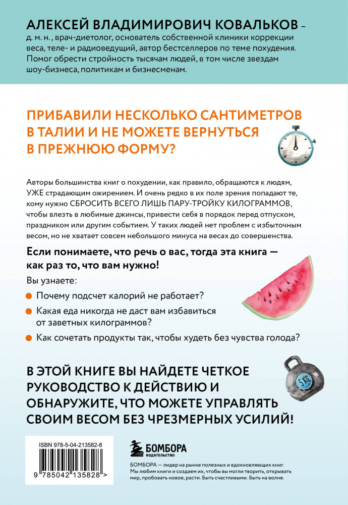 💳 Оплатить за товар можно при получении 🇰🇿 Есть бесплатная доставка по Казахстану от 1 дня 🎁 Копите бонусы с каждой покупки Серия: Методика доктора Ковалькова. Книжные бестселлеры для стройности тела Алексей Ковальков, доктор медицинских наук, автор бестселлеров о похудении. Он предлагает эффективную, а главное — безопасную экспресс-диету для тех, кто не испытывает проблем с избыточным весом, но остро нуждается в избавлении от пары килограммов в кратчайшие сроки. Благодаря этой книге вы сможете легко и быстро расстаться с лишними килограммами навсегда! |