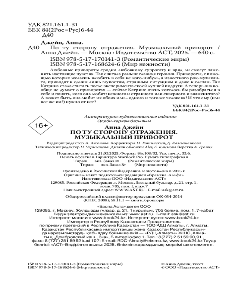 💳 Оплатить за товар можно при получении 🇰🇿 Есть бесплатная доставка по Казахстану от 1 дня 🎁 Копите бонусы с каждой покупки Серия: Романтические миры Любовные привороты сродни любовному суррогату и вряд ли смогут заменить настоящие чувства. Так считала раньше главная героиня. Привороты, с помощью которых желаешь влюбить в себя не кого-нибудь, а известного рок-музыканта, приводят к одним лишь глупостям, странным ситуациям и даже к слезам. Так Катрина стала считать после эксперимента своей лучшей подруги. А теперь она вообще не думает о приворотах — сейчас Катрине очень хотелось бы разобраться в себе и понять, кого она любит: нежного и странного или скверного и знаменитого? А может быть, она любит их обоих или... одного и того же человека? И что ему (или всё же им?) нужно от нее? |