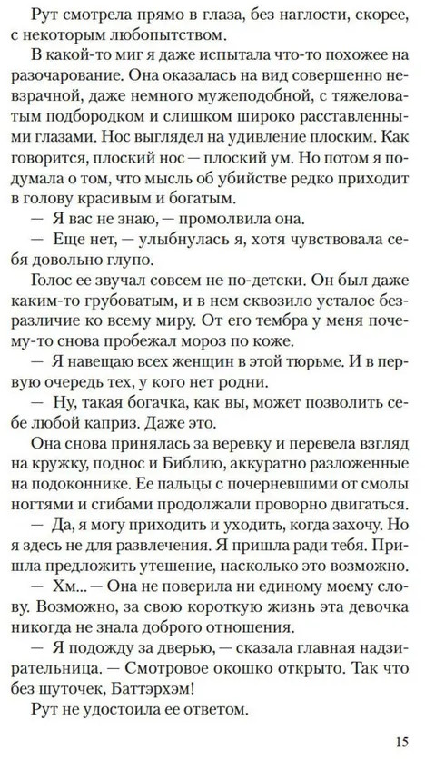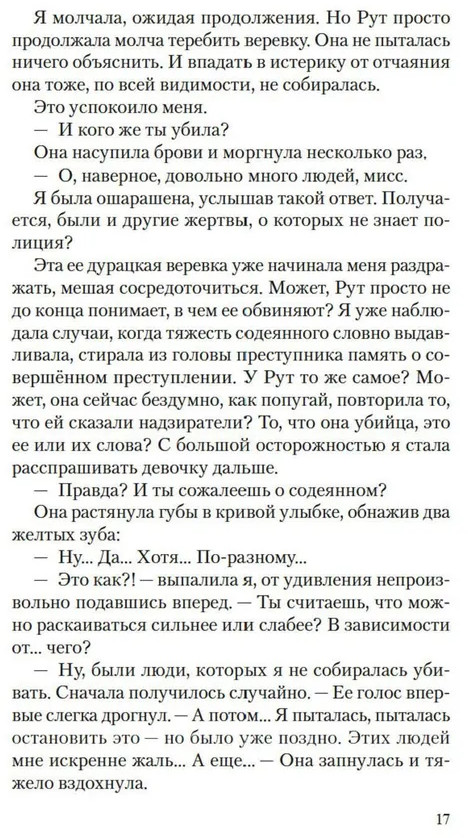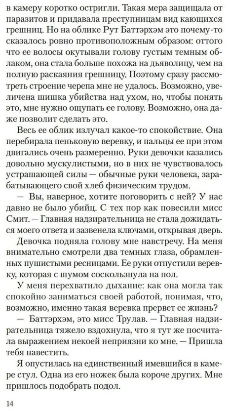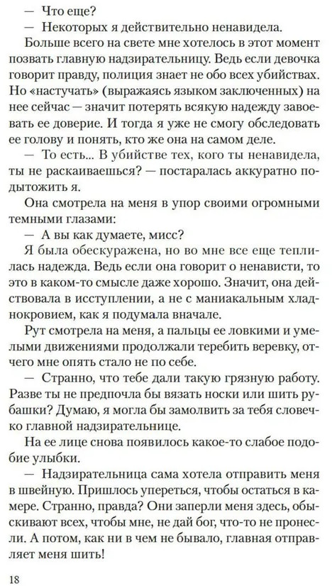 💳 Оплатить за товар можно при получении 🇰🇿 Есть бесплатная доставка по Казахстану от 1 дня 🎁 Копите бонусы с каждой покупки Серия: Дары Пандоры Доротея Трулав молода, богата и собирается замуж за любимого человека. Рут Баттэрхэм молода, бедна и ждет суда за убийство. Добродетельная Доротея посещает заключенных в тюрьме, утешая их душеспасительными беседами. Она увлечена френологией и пытается подтвердить на узницах свою гипотезу о том, что по форме головы можно распознать преступные наклонности и попытаться их исправить. Шестнадцатилетняя Рут кажется ей идеальным предметом для изучения, ведь ее череп еще не сформировался окончательно. Однако Рут ставит Доротею в тупик рассказами о сверхъестественной силе, присущей ее шитью, — она уверена, что способна убить с помощью иголки и нитки. Доротея не хочет верить ей, но история Рут не дает ей покоя, и в ее душу закрадываются сомнения. |