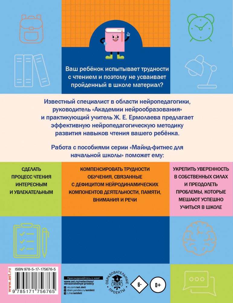 💳 Оплатить за товар можно при получении 🇰🇿 Есть бесплатная доставка по Казахстану от 1 дня 🎁 Копите бонусы с каждой покупки Серия: Майнд-фитнес для начальной школы Пособие серии «Майнд-фитнес для начальной школы» содержит материалы для обучающихся 1 класса, основанные на авторской нейропедагогической методике развития навыков чтения. Работа с тетрадью поможет им компенсировать трудности обучения, связанные с дефицитом нейродинамических компонентов деятельности, памяти, внимания и речи. Соответствует ФГОС, ФОП, ФРП НОО. |