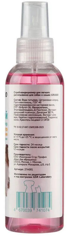 Grodo Спрей для легкого расчесывания и распутывания колтунов для собак и кошек