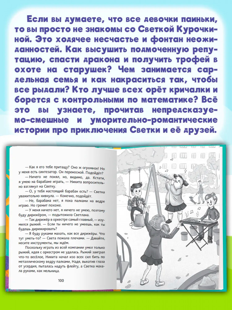 💳 Оплатить за товар можно при получении 🇰🇿 Есть бесплатная доставка по Казахстану от 1 дня 🎁 Копите бонусы с каждой покупки Серия: Книги для чтения Если вы думаете, что все девочки паиньки, то вы просто не знакомы со Светкой Курочкиной. Это ходячее несчастье и фонтан неожиданностей. Как высушить подмоченную репутацию, спасти дракона и получить трофей в охоте на старушек? Чем занимается сардельная семья и как накраситься так, чтобы все рыдали? Кто лучше всех орёт кричалки и борется с контрольными по математике? Всё это вы узнаете, прочитав непредсказуемосмешные и уморительно-романтические истории про приключения Светки и её друзей. |