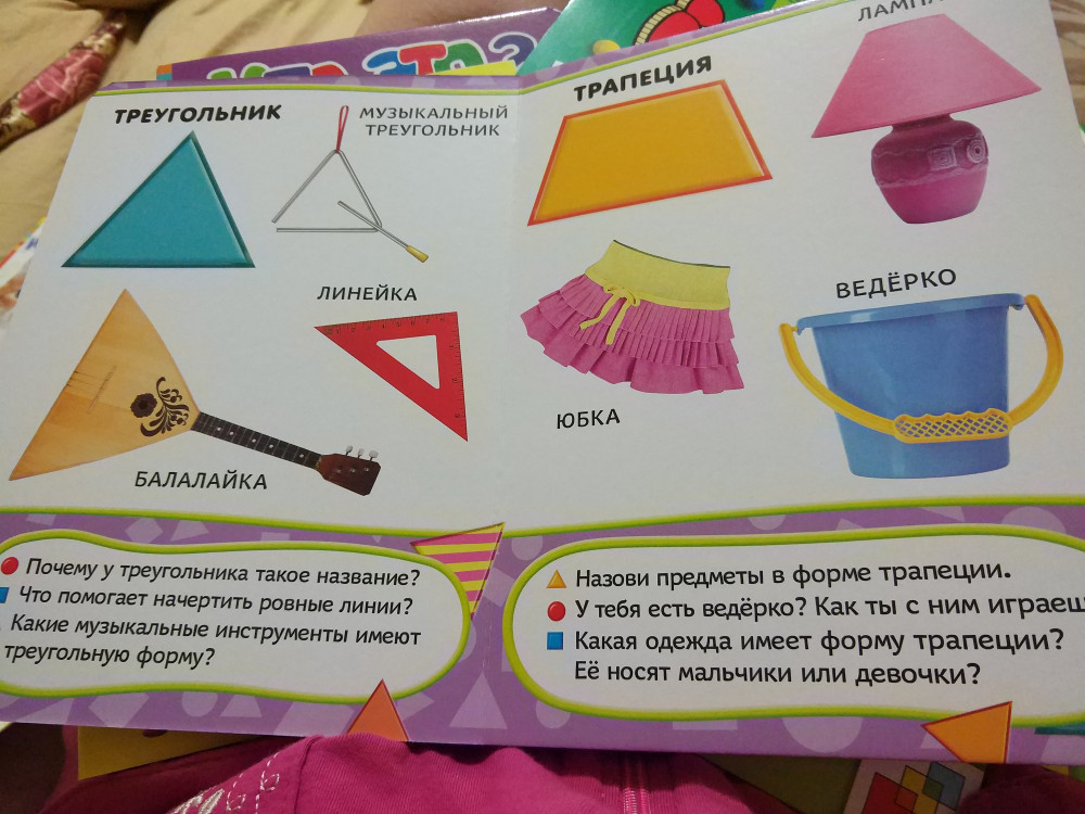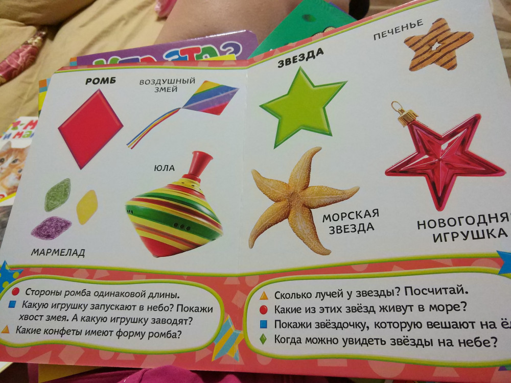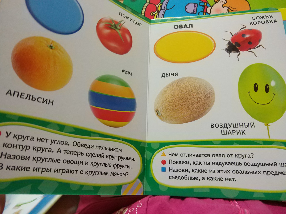 Книга картонная, прочная. Сыну 1,5. Пальчиками обводит контур фигур и предметов.