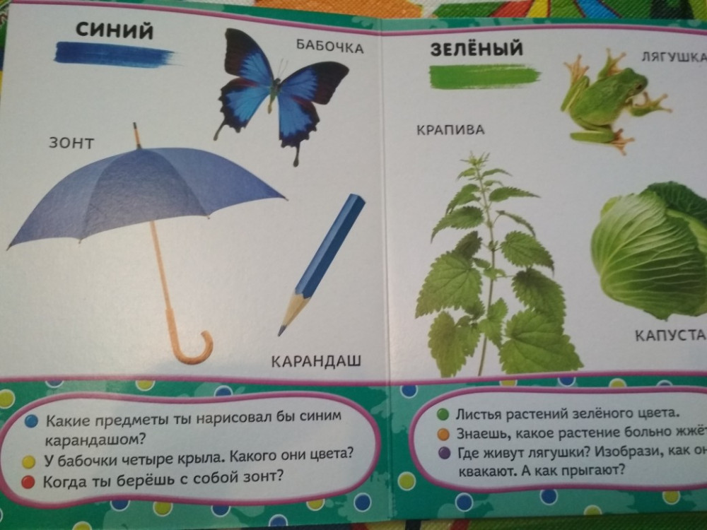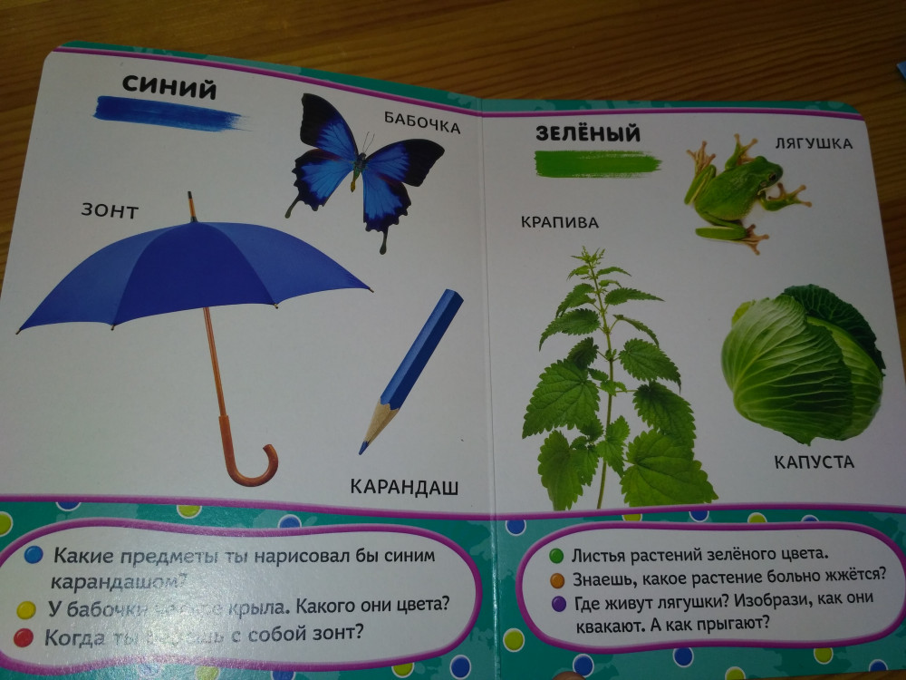 Цвета учила по карточкам домана. Затем по этой книге закрепляем. Супер. Рекомендую. Выкупила всю серию.