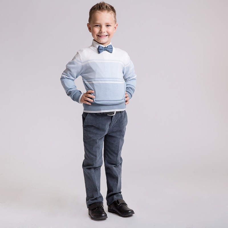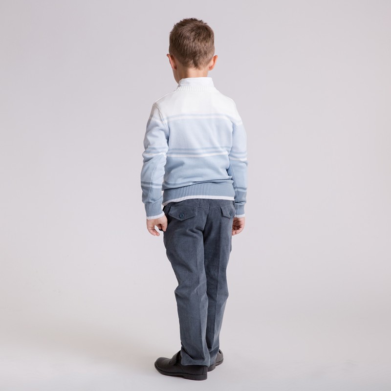 Приобрела джемпер ростовкой 140 см. Качеством осталась довольна. Джемпер мягенький, тоненький. Брала в комплекте с брюками и голубой рубашкой. Комплект выглядит отлично.