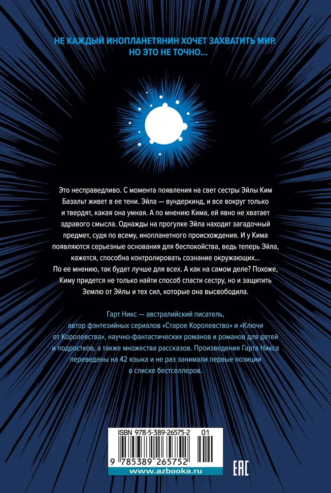 💳 Оплатить за товар можно при получении 🇰🇿 Есть бесплатная доставка по Казахстану от 1 дня 🎁 Копите бонусы с каждой покупки Серия: Ключи от Королевства Новая захватывающая история для детей и подростков от автора популярных фантастических книг «Леворукие книготорговцы Лондона» и «Лукавые книготорговцы Бата»! Ким обычный австралийский школьник, который любит играть в «Подземелья и драконы» с друзьями. К его мнению прислушиваются все, кроме родной младшей сестры. Это несправедливо. С момента появления сестры на свет Ким живет в ее тени. Эйла — вундеркинд, и все вокруг только и твердят, какая она умная. А по мнению Кима, ей очевидно не хватает здравого смысла. Однажды на прогулке Эйла находит загадочный предмет явно инопланетного происхождения. И у Кима появляются серьезные основания для беспокойства, потому что теперь Эйла, кажется, способна контролировать сознание окружающих... |
