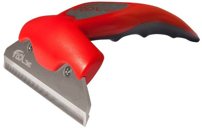 • гребёнка инструмента выполнена из нержавеющей стали. Благодаря идеально подобранному углу наклона не режет шерсть, мягко выдергивает мертвый подшерсток, не повреждая гладкий остевой волос;