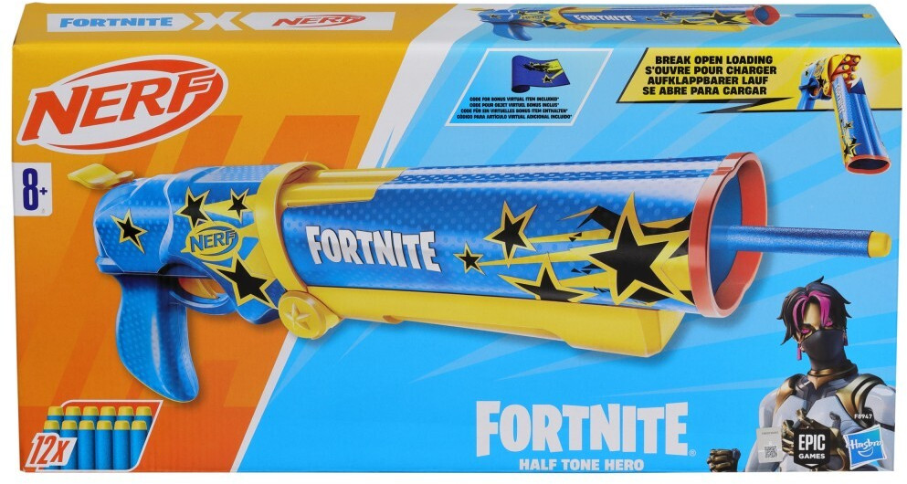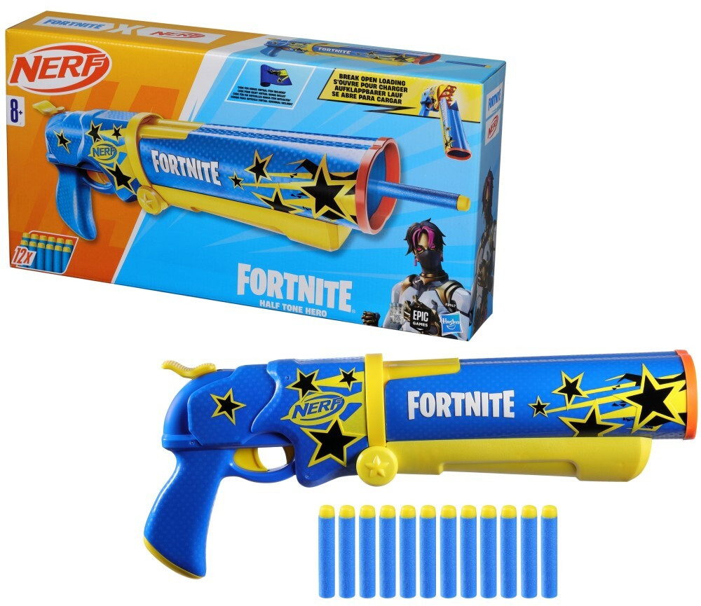 Пусковая установка Fortnite Half Tone Hero от Hasbro — это официально лицензированный бластер с дизайном, вдохновленным популярной видеоигрой. Представьте себя участником веселых приключений в Fortnite! Бластер Nerf оснащен крутым разрывным зарядом. Ствол пусковой установки открывается, и вы можете поместить внутрь шесть стрел. В наборе вы найдете двенадцать оригинальных дротиков Nerf Elite. Это запас для сверхинтенсивной битвы! Бластер стреляет по одному дротику за раз — когда вы перезаряжаете его и нажимаете на спусковой крючок. Синий бластер Half Tone Hero — это модель для настоящих героев! Он отлично подойдет для игры на свежем воздухе.