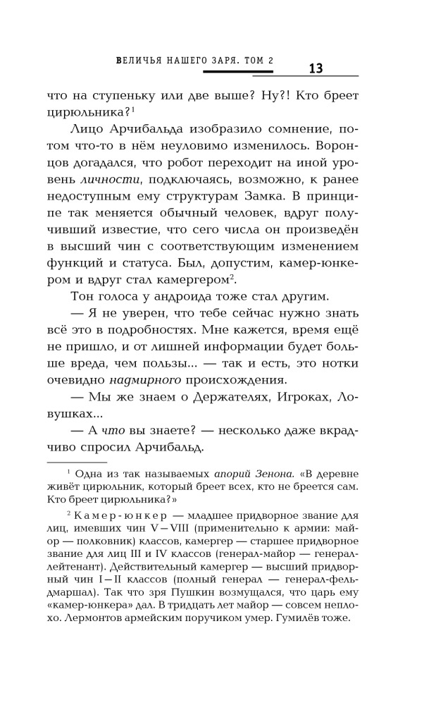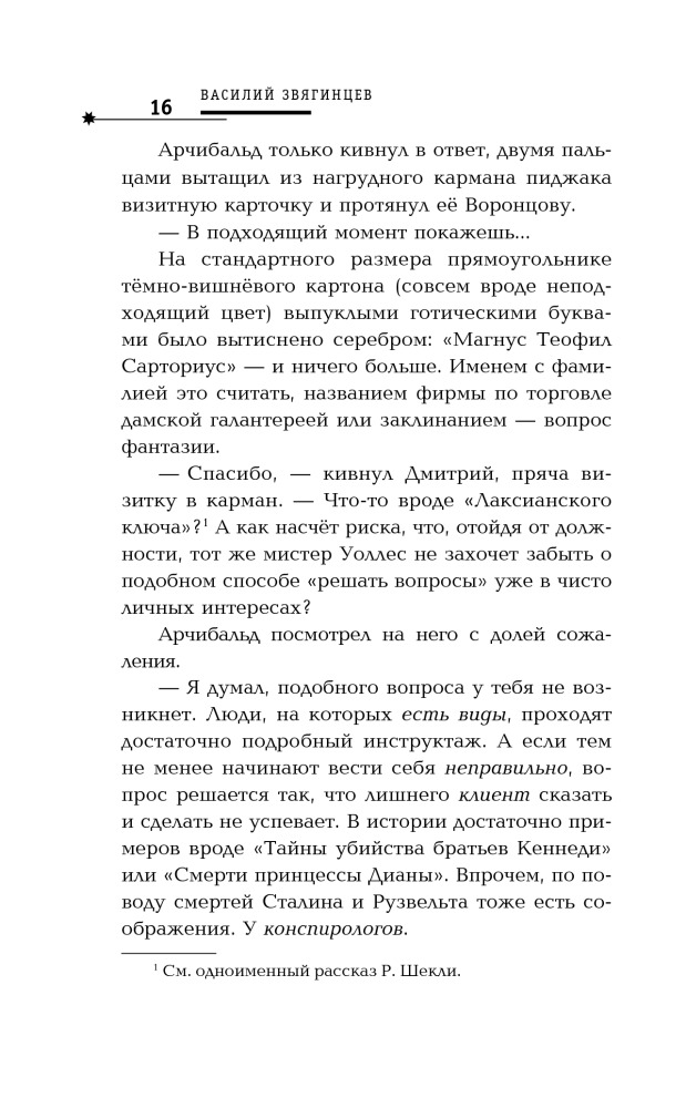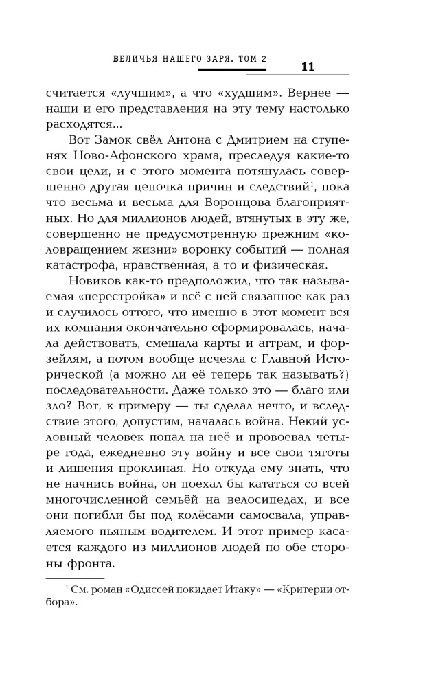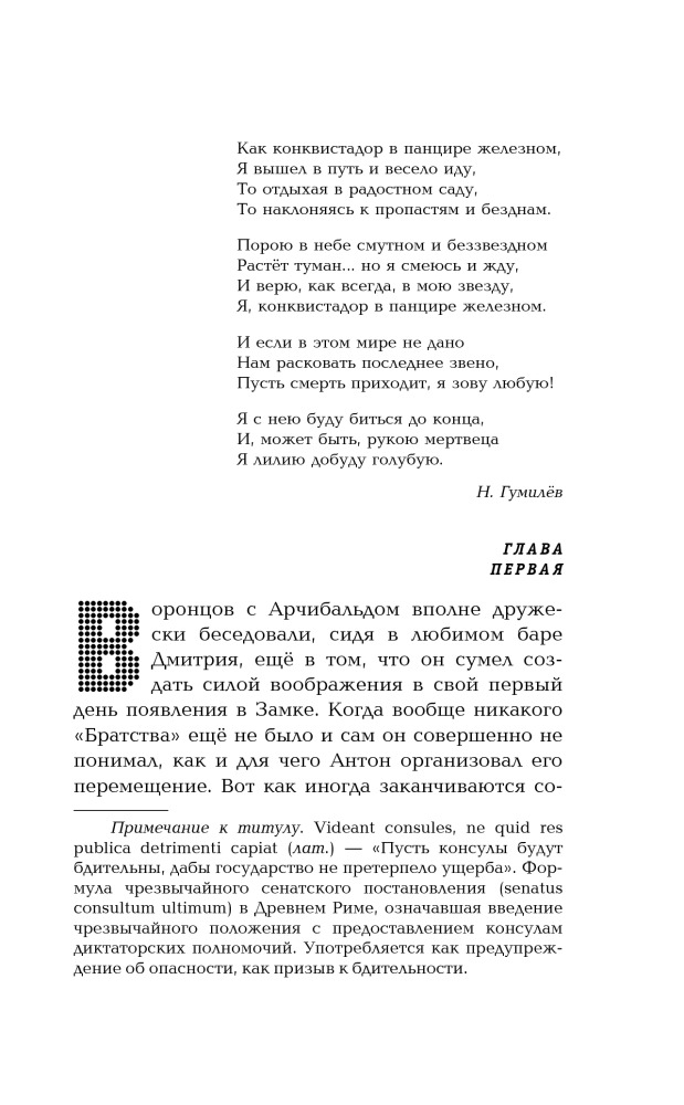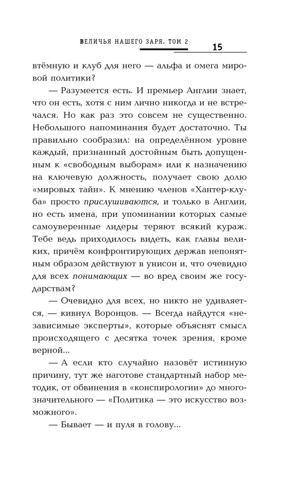Величья нашего заря. Том 2. Пусть консулы будут бдительныВ данный момент этот товар отсутствует в продаже. Возможно, у нас найдется аналогичный или похожий товар здесь. Серия: Русская фантастика Это из зрительного зала кажется, что марионетки пляшут сами по себе, а стоит зайти за кулисы, тут тебе и картонные домики, и барабан вместо грома и кукловод, который, умело дергая за ниточки, создает целый мир и заставляет нас поверить в его реальность. Но кукловоду не всегда удается оставаться невидимым, приходит время и ему выйти на поклон к публике. Так получилось и на этот раз, третья сила, загадочный «кукловод», который постоянно вмешивался в дела «Андреевского братства», вынужден был проявиться и стать доступным для общения с оппонентами. Чем не замедлили воспользоваться Вадим Ляхов и Дмитрий Воронцов, каждый со своей стороны приложившие максимум усилий, чтобы наконец добраться до источника и инициатора глобальных комбинаций на шахматной доске истории. Станет ли эта партия решающей, и для кого? |