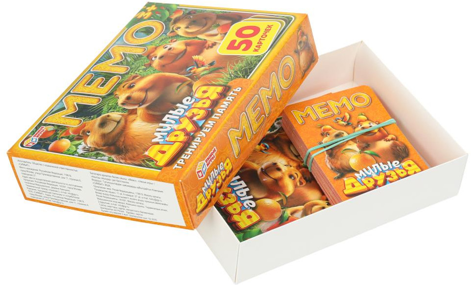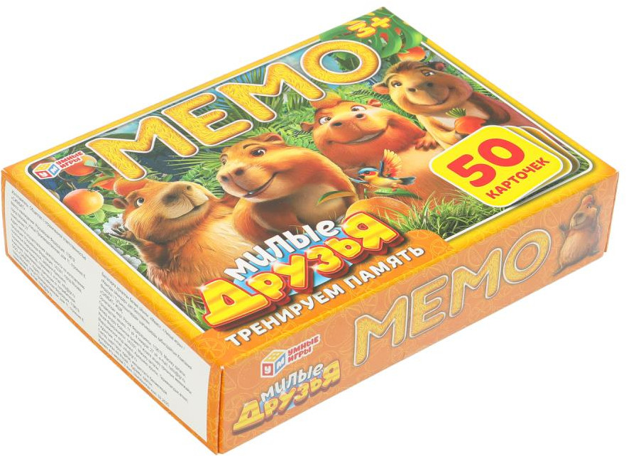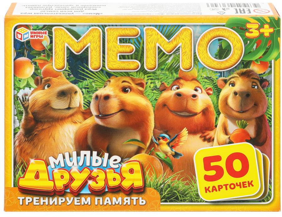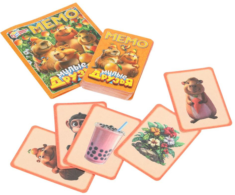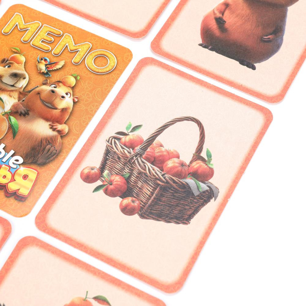 • 50 красочных карточек (25 пар) с забавными капибарами;