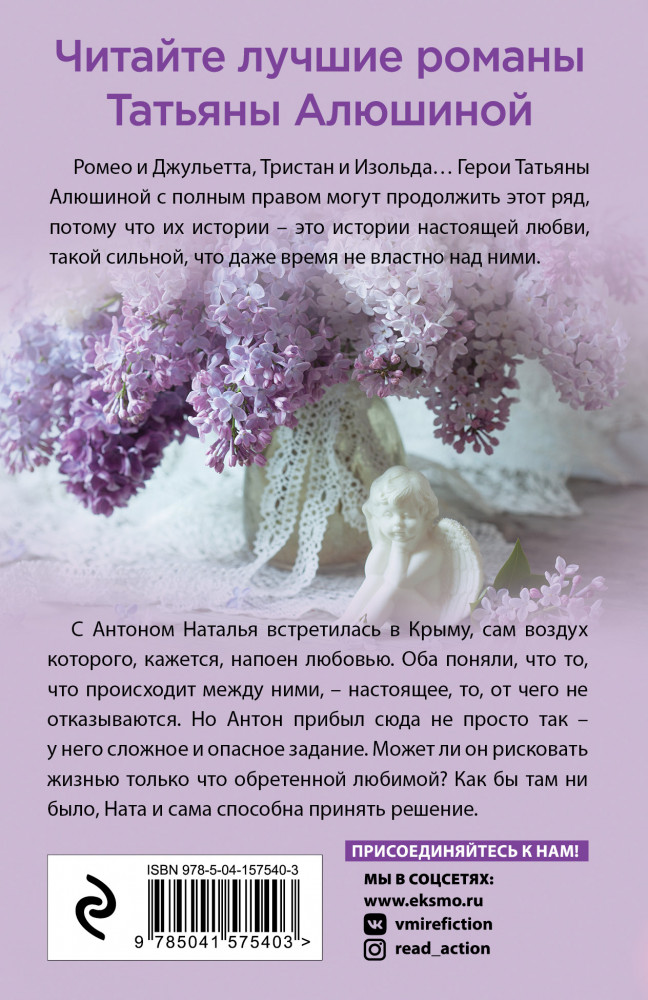 Крымский романВ данный момент этот товар отсутствует в продаже. Возможно, у нас найдется аналогичный или похожий товар здесь. Серия: Еще раз про любовь. Романы Т. Алюшиной. Новое оформление (обложка) С Антоном Наталья встретилась в Крыму, сам воздух которого, кажется, напоен любовью. Оба поняли, что то, что происходит между ними, — настоящее, то, от чего не отказываются. Но Антон прибыл сюда не просто так — у него сложное и опасное задание. Может ли он рисковать жизнью только что обретенной любимой? Как бы там ни было, Ната и сама способна принять решение. |