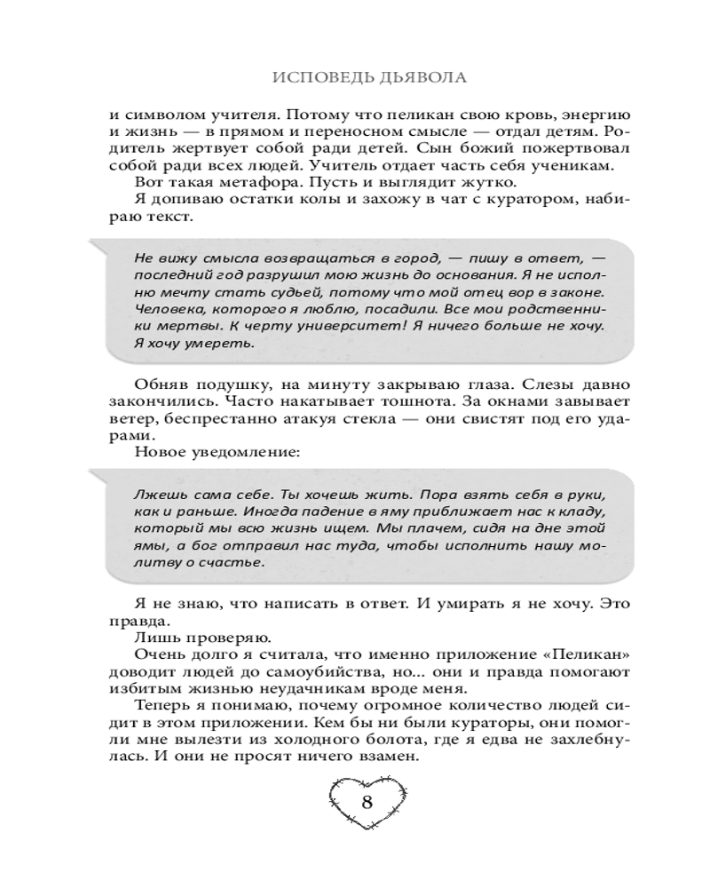 💳 Оплатить за товар можно при получении 🇰🇿 Есть бесплатная доставка по Казахстану от 1 дня 🎁 Копите бонусы с каждой покупки Серия: Право на любовь. Остросюжетные романы Софи Баунт Жизнь студентки Эмилии превратилась в ад. Ее возлюбленный адвокат в тюрьме, друг из следствия бесследно исчез, а город сотрясают убийства Кровавого фантома, который продолжает оставлять своим жертвам жуткое послание: «Покайся» на зеркалах. Эмилия совершенно одна и в ее жизни лишь два утешения — странное приложение из даркнета, обещающее психологическую поддержку, и общество молодого загадочного священника Адриана. Секты, тайные общества, психиатрическая клиника... Кажется, что маньяк неуловим. Он виртуозно манипулирует людьми и ускользает из всех ловушек. Одна только Эмилия подбирается к нему опасно близко, чтобы узнать шокирующую правду. Убийца грешников все это время был рядом... |