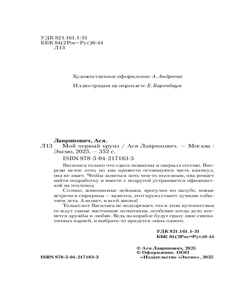 💳 Оплатить за товар можно при получении 🇰🇿 Есть бесплатная доставка по Казахстану от 1 дня 🎁 Копите бонусы с каждой покупки Серия: Young Adult. Инстахит. Романтика Василиса только что сдала экзамены и закрыла сессию. Впереди целое лето, но как провести оставшуюся часть каникул, она не знает. Чтобы заняться хоть чем-то полезным, она решает найти подработку и вместе с подругой устраивается официанткой на теплоход. Солнце, живописные пейзажи, прогулки по палубе, новые встречи и сюрпризы — кажется, этот круиз станет лучшим событием лета. А может, и всей жизни! Только вот Василиса не подозревает, что в этом путешествии ее ждут самые настоящие испытания, особенно когда дело коснется дружбы и любви. Ведь на корабле будут сразу двое симпатичных парней, и выбрать-то придется лишь одного. |