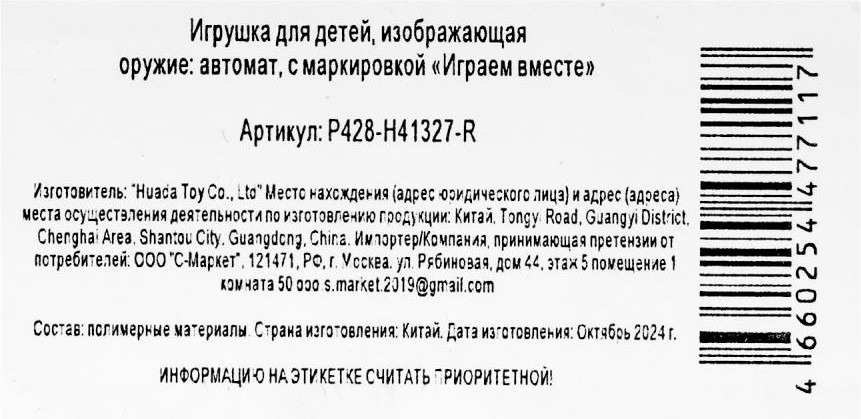 Играем вместе Автомат-трещотка-35% +22
