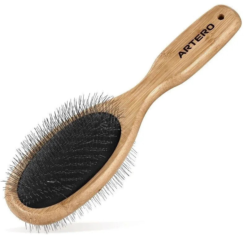 Эта щетка для домашних животных идеально подходит для расчесывания и вытягивания, а также помогает удалить остатки тонкой линяющей шерсти у собак и кошек разного размера. Щетка для домашних животных идеально подходит для расчесывания тонкой шерсти кошек и собак. Изготовлена из высококачественных материалов, таких как прочный экологически чистый бамбук. Имеет гибкие щетинки. Резиновая подушка обеспечивает лучшую приспособляемость шипов к поверхности животного
