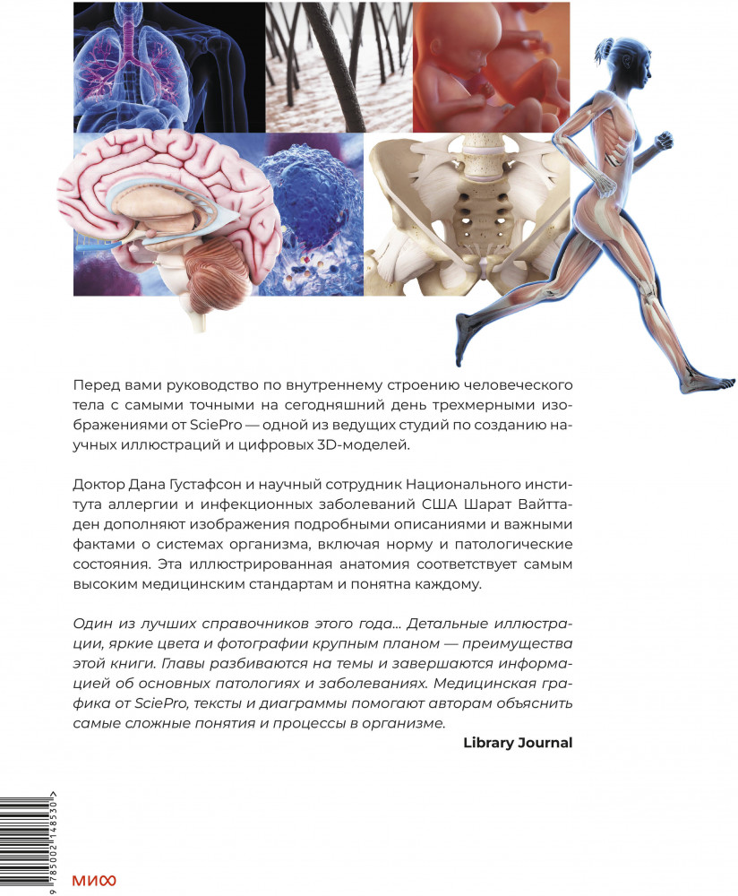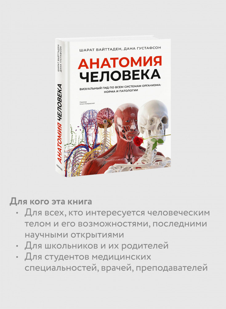 💳 Оплатить за товар можно при получении 🇰🇿 Есть бесплатная доставка по Казахстану 🎁 Копите бонусы с каждой покупки Под обложкой — подробный и научный рассказ об организме, от генов и нейронов до органов, сложнейших систем и их функций, таких как сознание, сон и речь. Авторы описывают краткую историю анатомии и современные методы диагностики (КТ, МРТ, ПЭТ). Дают научные рекомендации, полезные советы и неочевидные факты. Знаете ли вы, что цвет волос влияет на их густоту, где находится добавочный скелет и что мозг в утробе вырабатывает 250 000 нейронов в минуту? Каждая глава посвящена одной теме и завершается описанием отклонений и заболеваний: с фотографиями, 3D-моделями и пояснениями. Эта иллюстрированная энциклопедия соответствует самым высоким медицинским стандартам — и ее интересно читать и детям, и взрослым. |