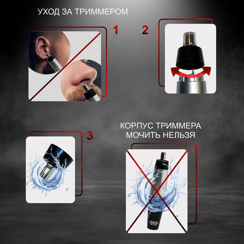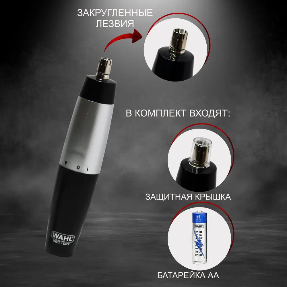 Триммер Wahl для носа и ушей отличается легкостью и компактностью. Его вес равен всего 52 г. Представленное устройство позволяет избавиться от нежелательных волос в носу или в ушах быстро и безболезненно. Корпус модели оформлен в серебристой расцветке с черными элементами.
