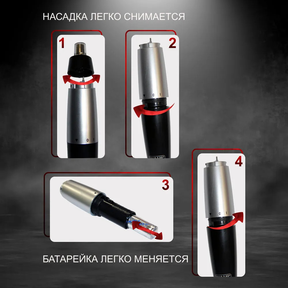 Внимание! Триммер работает автономно за счет 1 батарейки типа АА (входит в комплект).
