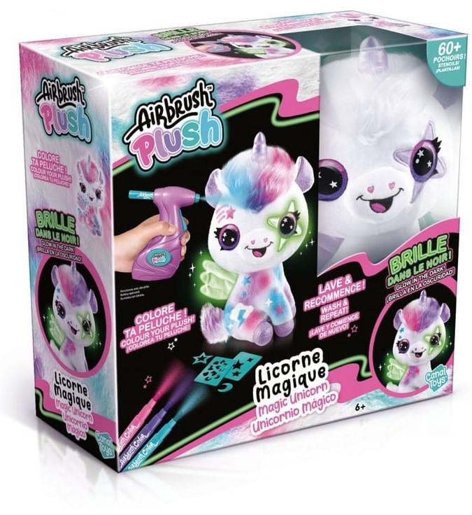 Airbrush Plush Мягкая игрушка с аэрографом «Светящийся в темноте единорог. Unicorn Glow in the dark»В данный момент этот товар отсутствует в продаже. Возможно, у нас найдется аналогичный или похожий товар здесь. Мечтаете стать крутым мастером дизайна? Тогда новые наборы DIY Airbrush Plush от Canal Toys для вас! Это новая креативная концепция, которая предлагает превратить обычную мягкую игрушку в уникальную и яркую с помощью эргономичного аэрографа. Как всегда, все очень просто и легко — поместите маркеры внутрь аэрографа и начинайте! Вы можете сделать свой дизайн или использовать трафареты из набора. Маркеры светятся в темноте! ВАУ-эффект гарантирован! Мойте своего любимца и раскрашивайте его снова и снова! |