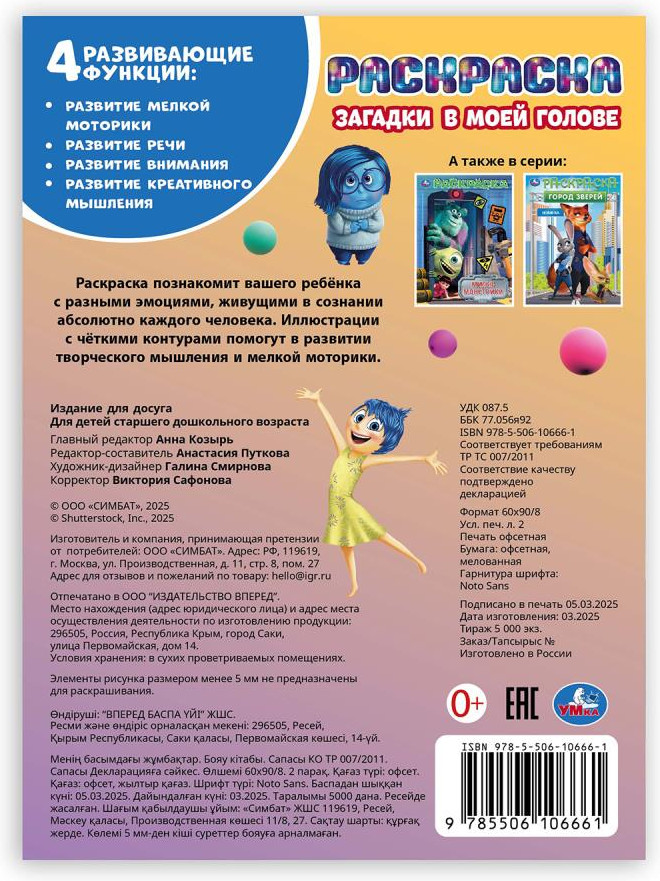💳 Оплатить за товар можно при получении 🇰🇿 Есть бесплатная доставка по Казахстану от 1 дня 🎁 Копите бонусы с каждой покупки Раскраска «Загадки в моей голове» ТМ «УМка» — отличный подарок для юных художников. Эта увлекательная раскраска про приключения необычных героев — эмоций, живущих в сознании девочки-школьницы — непременно понравится вашему ребёнку. В ней он найдёт интересные картинки с чёткими контурами и сюжетными текстами к ним. Благодаря удобному формату раскраску можно взять с собой в путешествие. Игровые занятия с раскраской ТМ «УМка» способствуют развитию: моторики, внимания, творческого мышления, усидчивости и визуального восприятия. |