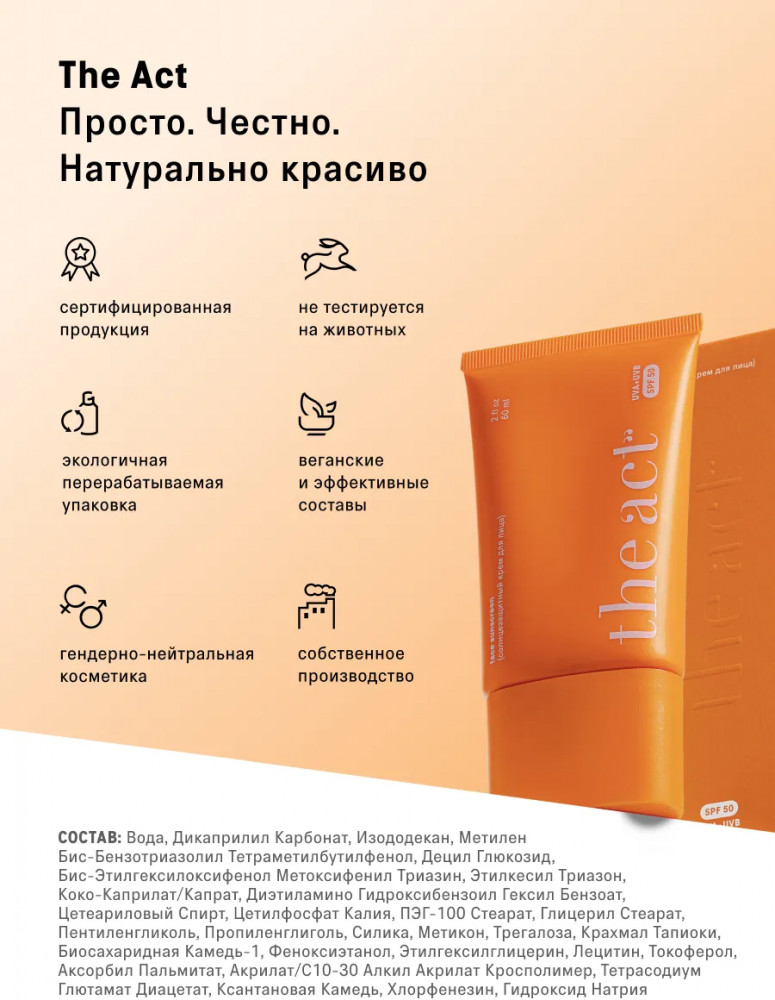 The Act Крем солнцезащитный для лица «Face Sunscreen» SPF 50-25% +68